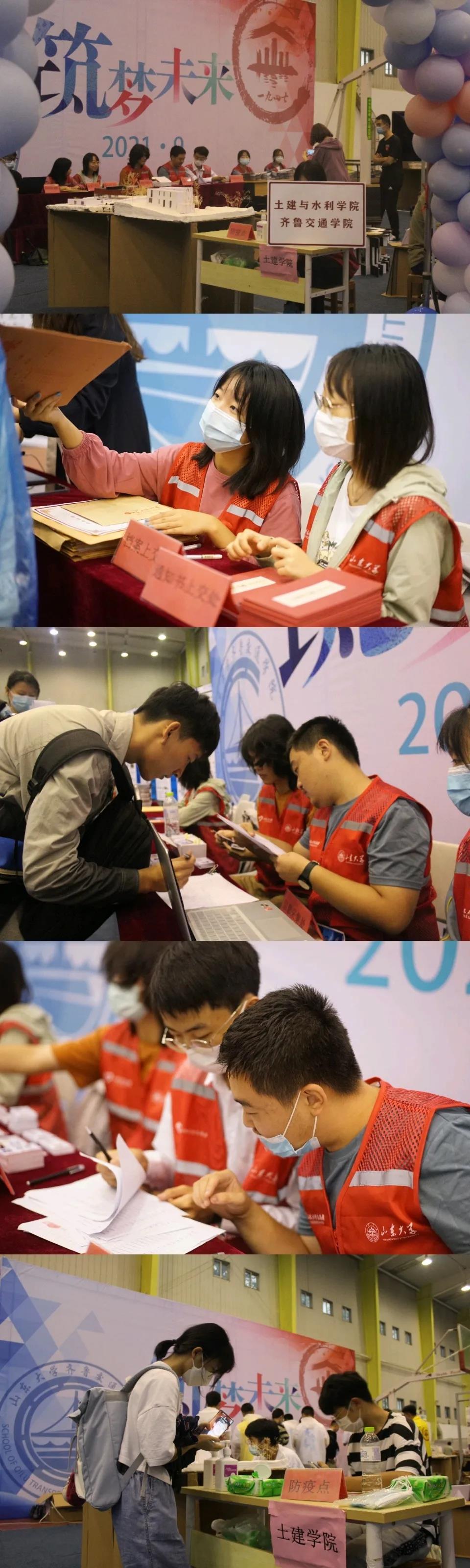 献礼百廿,传承创新。本次场地布置既延续了学院传统文化血脉,又紧密结合学科特色凸显创新。场地设计以迎接百廿校庆为理念根基,邀请新生留言板寄语威廉希尔中文网站平台,献上百廿新SDUer的生日祝福,并合影留念记录这一珍贵时刻;场地布局以“展”布展,将员工优秀建筑展览作品巧妙融入行走通道中,让新生在报到第一刻就能体会到专业中的美学享受;学院还通过精美的海报和照片展现了学院人才培养、科学研究、团队队伍等情况,通过多媒体等演示了土木水利工力等专业的实验视频,向新生诉说着一代代土建人对“求实创新,至臻卓越”的不懈追求,传递着william威廉亚洲官方独特而深厚的人文关怀氛围和文化底蕴。